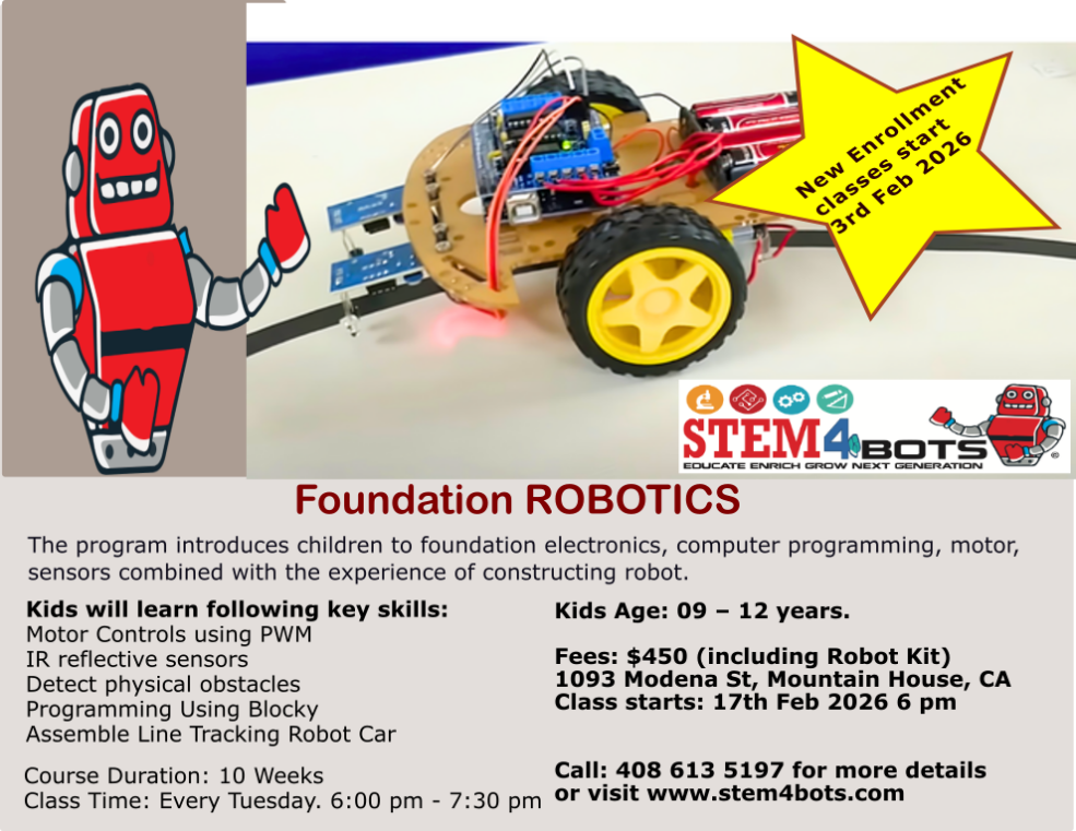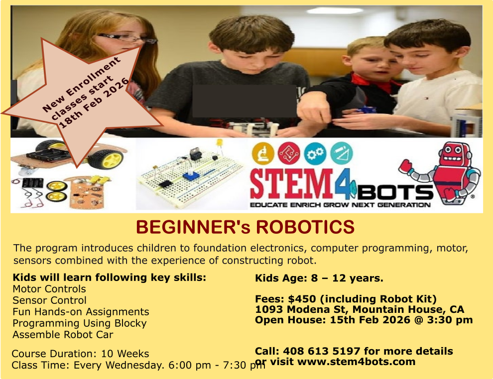 STEM4Bots Robotics is a hands-on, project-based program where students solve real challenges by building, wiring, and coding their own robots. Along the way they practice physics, mechanics, electronics, and programming—plus the collaboration and communication skills that matter in today’s classrooms and careers.